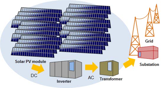 The Sun is the primary source of energy. The heat energy radiated by the Sun can be focussed over a small area by means of reflectors. This heat can be used to raise steam and electrical energy can be produced with the help of turbine-alternator combination. However, this method has limited application because : (a) it requires a large area for the generation of even a small amount of electric power (b) it cannot be used in cloudy days or at night (c) it is an uneconomical method. Nevertheless, there are some locations in the world where strong solar radiation is received very regularly and the sources of mineral fuel are scanty or lacking. Such locations offer more interest to the solar plant builders.