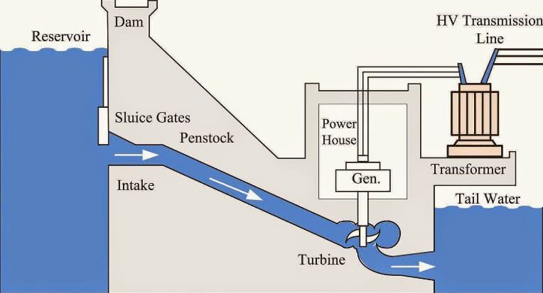 When water is stored at a suitable place, it possesses potential energy because of the head created. This water energy can be converted into mechanical energy with the help of water turbines. The water turbine drives the alternator which converts mechanical energy into electrical energy. This method of generation of electrical energy has become very popular because it has low production and maintenance costs.